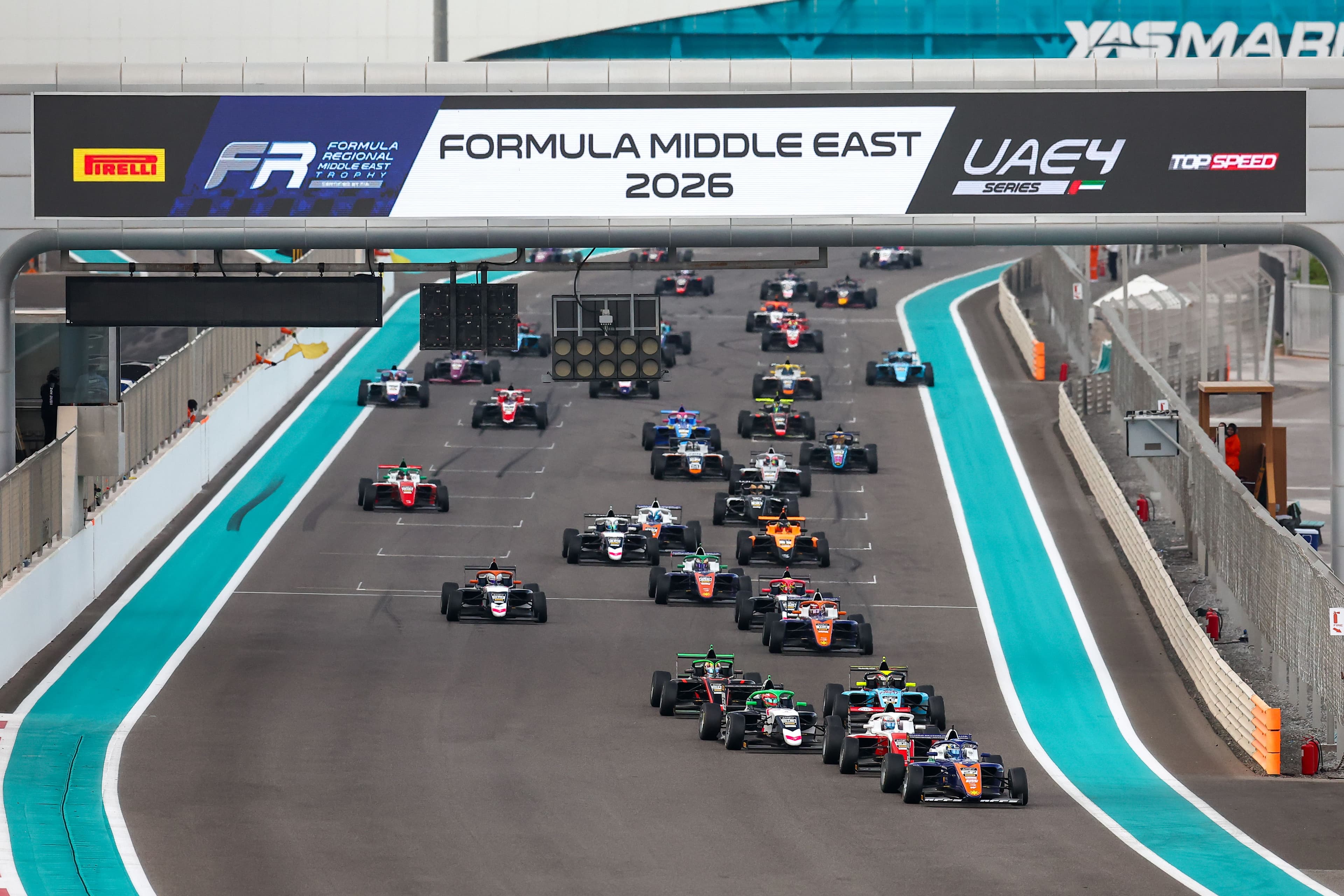 32 cars on track in the stunning Abu Dhabi setting as a new era of Formula Regional racing begins with the new Tatuus single-seater